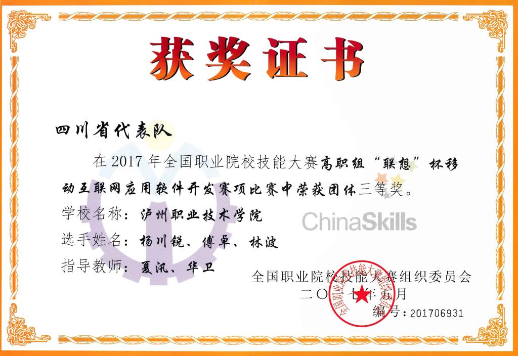 本站讯(信息来源:信息工程系)近日,信息工程系计算机应用技术专业员工组队参加了2017年四川省高职院校计算机网络应用员工技能大赛,并在竞赛中获得了三等奖的成绩。
