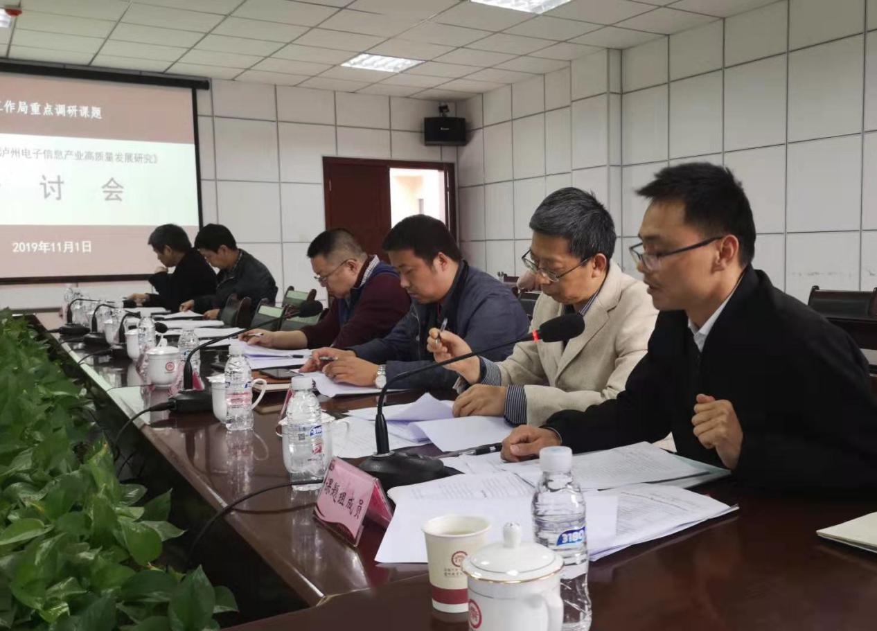 11月1日下午,泸州市科技与人才工作局重点课题《科技创新助推泸州电子信息产业高质量发展研究》研讨会在公司综合楼415会议室召开。