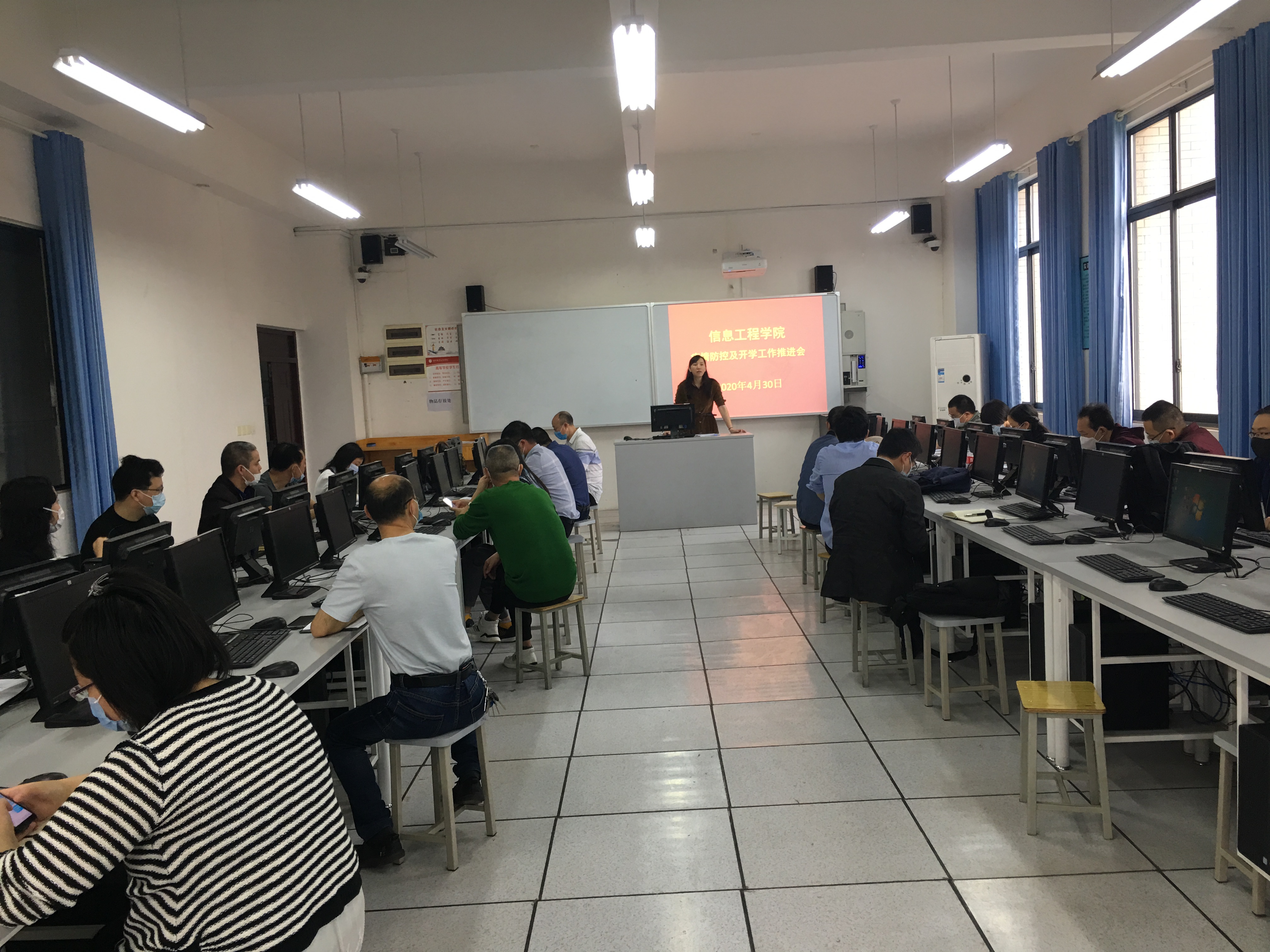 4月30日上午,信工院在弘礼楼4308机房召开疫情防控及开学工作推进会。