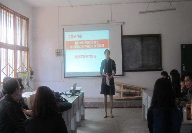 11月16日下午,信息工程系在启明楼105召开了全系大会,组织全系教职工学习十八大重要精神和交流系部近期工作情况,信息工程系副主任曾德明主持会议。