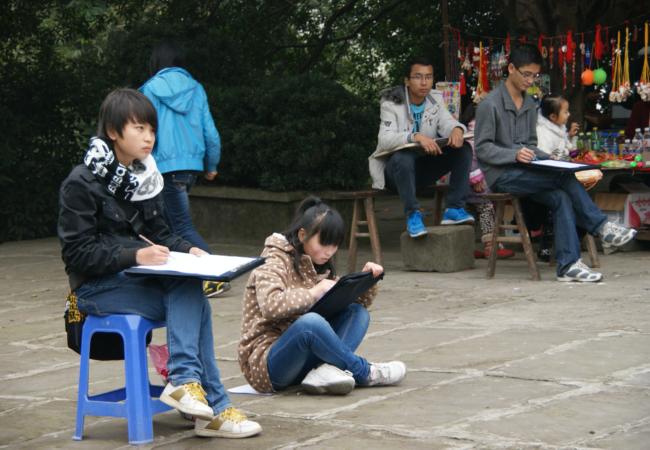 2012年12月9日,信息工程系数字传媒教研室的老师们带领12级动漫设计专业和图形图像制作专业的员工到九狮山风景区进行写生。
