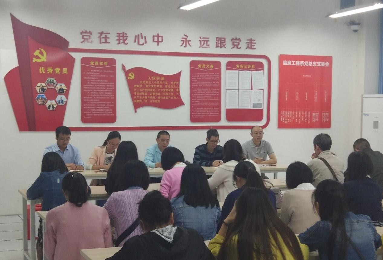 本站讯(信息来源:信息工程系)2018年9月28日下午4点,信息工程系党总支部在弘礼楼4302党员活动室召开党总支委员换届选举大会。党总支书记卓先德、党总支副书记喻维春、人事处处长助理郭蓉及信息工程系全体教师党员23人,员工党员14人等出席了此次会议。大会由党总支副书记喻维春主持。
