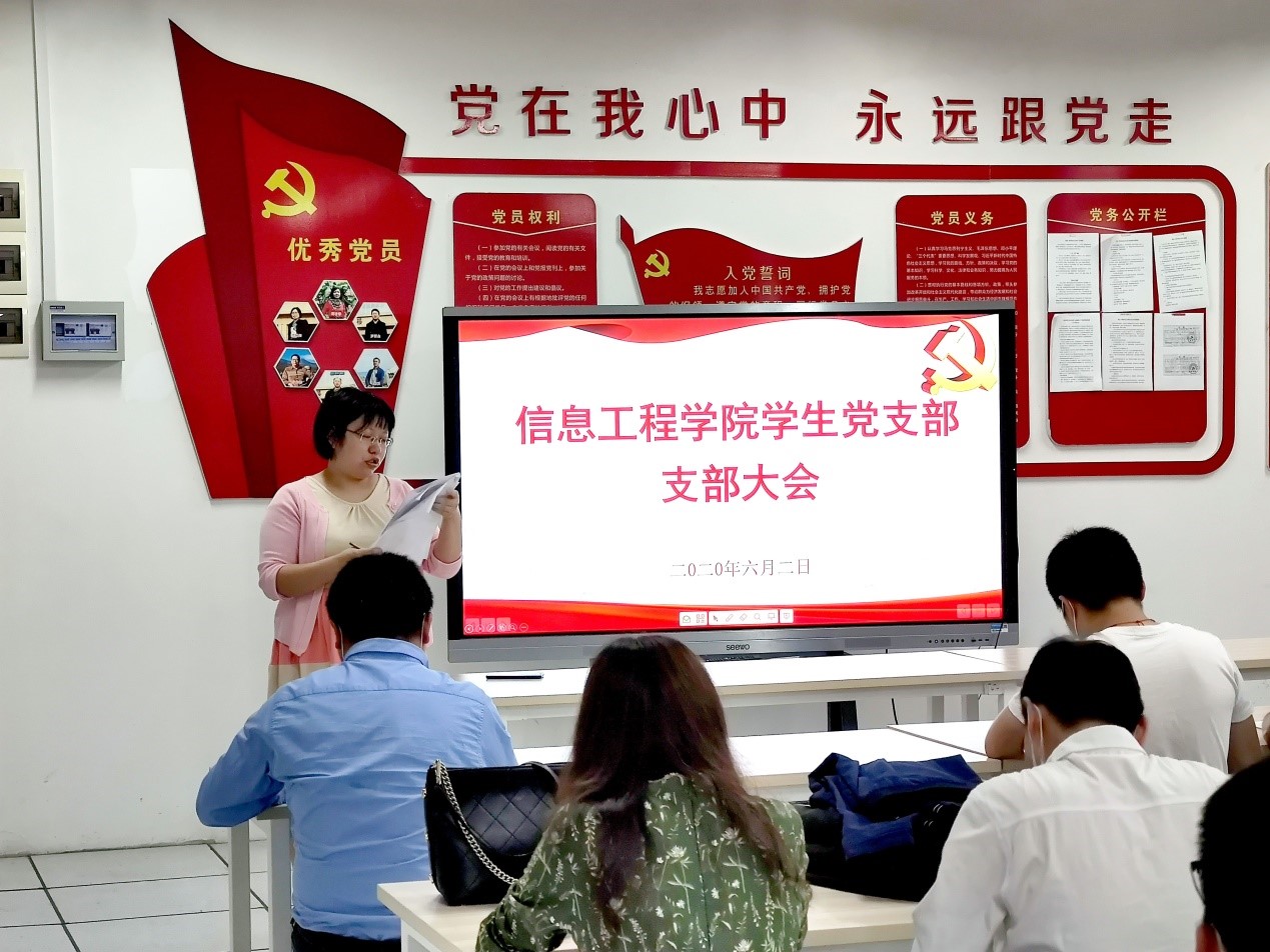 6月2日,信息工程公司员工党支部在弘礼楼4302教室召开预备党员转正大会,员工党支部全体党员和相关入党培养人参加了会议,受新冠疫情影响,在外实习的同志通过在线视频参会。会议由支部书记杨萍主持。杨萍首先向大会报告参会人员到会情况,介绍大会的流程和具体要求。