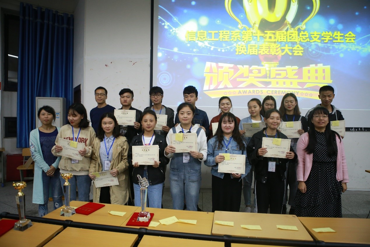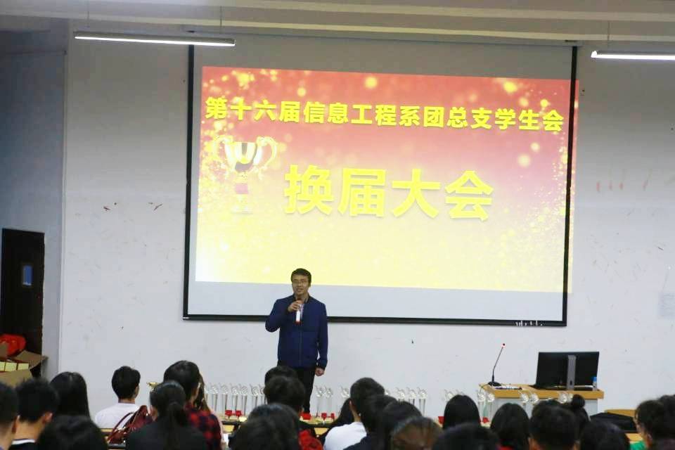2018年10月11日晚6点半,信息工程系团总支员工会在萧秋厅举办了第十六届员工会换届选举大会。信息工程系党总支副书记喻维春、团总支书记刘利、18级辅导员杨萍老师、李建华老师、周艳老师出席本次大会。参加本次大会的还有信息系团总支员工会全体成员。大会由主席团邓三鑫主持。