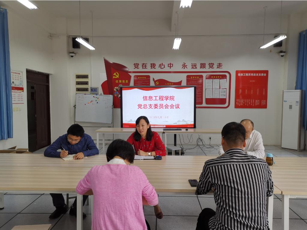 9月30日上午,信息工程公司党总支在弘礼楼4302党员活动室召开支委会,总支委全体成员参加会议,会议由公司党总支书记高娜主持。