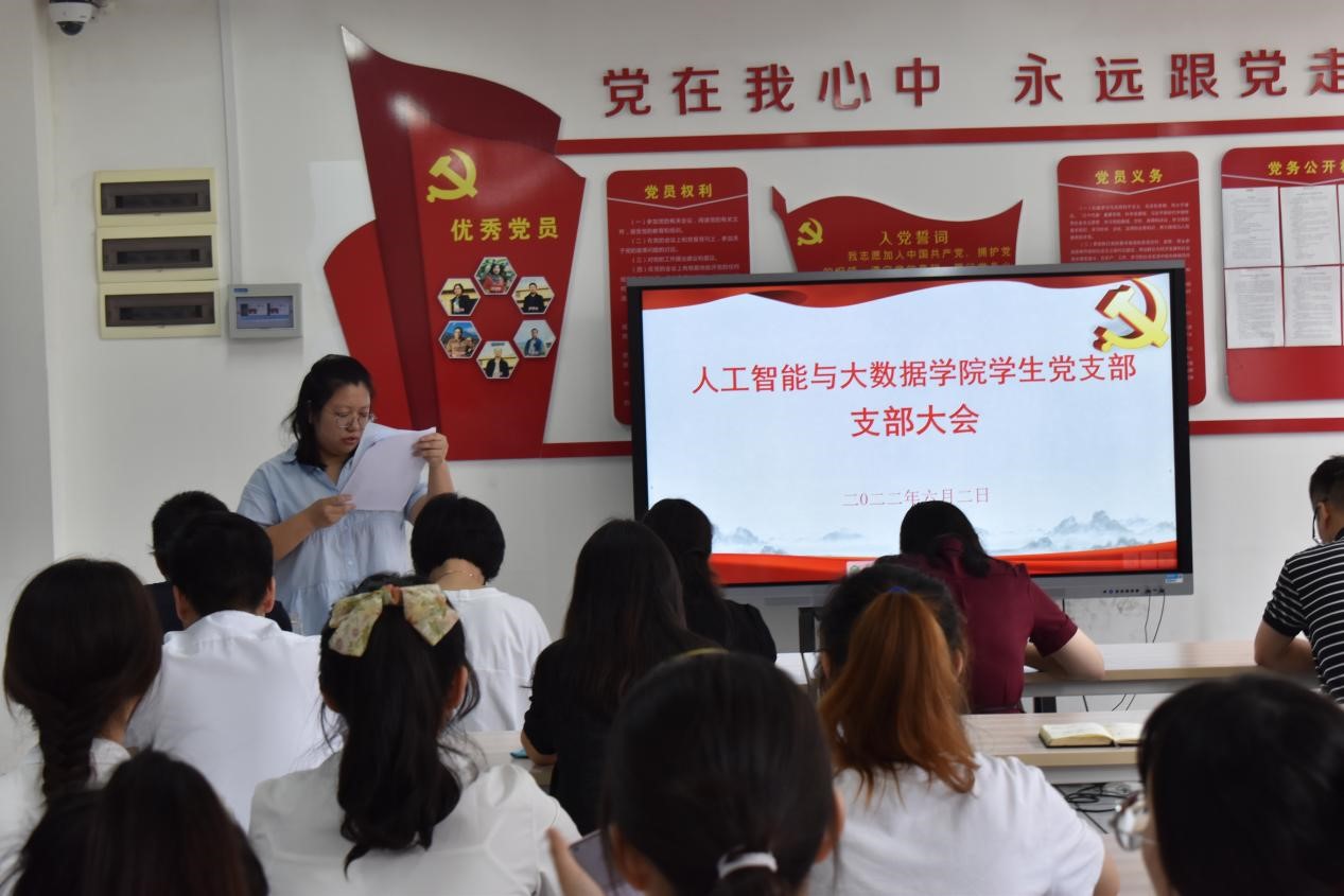 杨萍首先向大会报告参会人员到会情况,介绍大会的具体流程和具体要求,会议严格按照党员发展的程序进行。