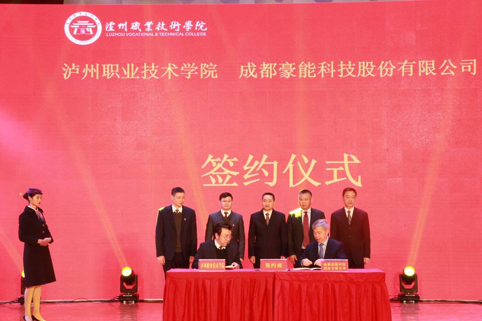 集团副经理彭涛与成都豪能科技股份有限公司董事长向朝东签署“人才培养校企合作协议”。