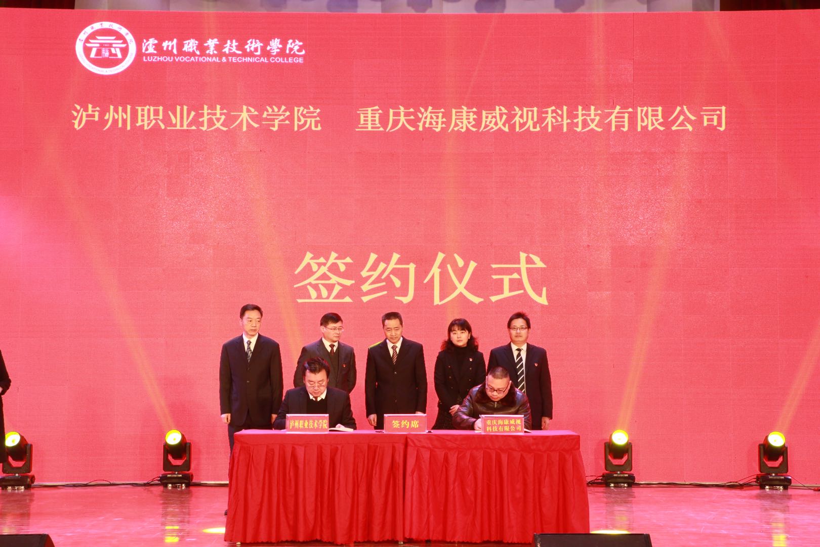 集团副经理彭涛与重庆海康威视科技有限公司总经理王荣涛签署“人才培养校企合作协议”。