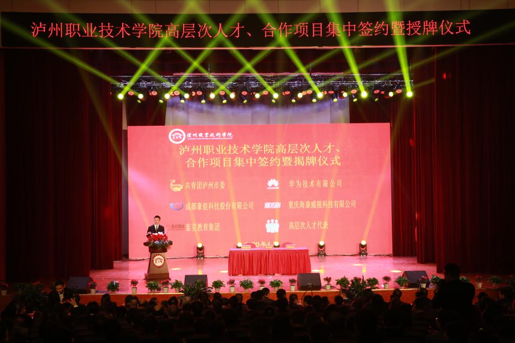 2020年1月3日上午11点,K1体育最新网址高层次人才、校企合作项目集中签约暨揭牌仪式在玉阶素质教育基地隆重举行。中共泸州市委常委、常务副市长封安,市、区相关部门领导,各签约单位领导,拟签约高层次人才,公司党委书记何杰,党委副书记、经理杨宗伟及其余校领导,部分师生代表出席仪式。签约仪式由杨宗伟主持。