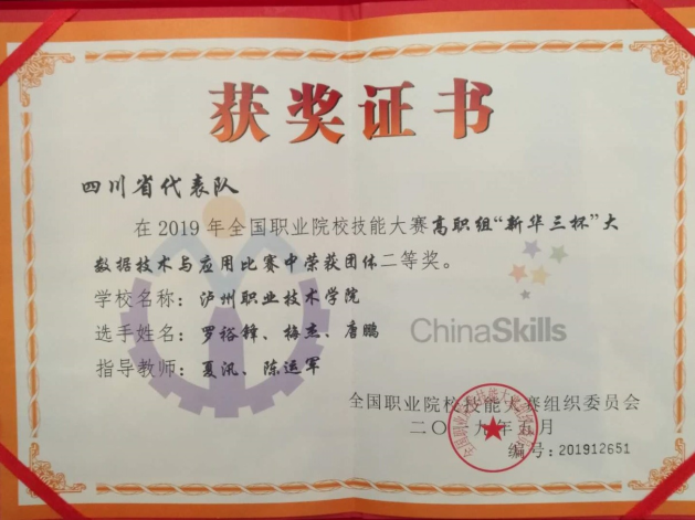 建立华为ICT公司一年以来,在大数据、人工智能、数据通信、鲲鹏智能计算等领域成果丰硕,在职业技能竞赛中获得全国二等奖1项,省一等奖2项。在四川鲲鹏大赛中作为高校唯一参赛队伍获得最佳实践奖。