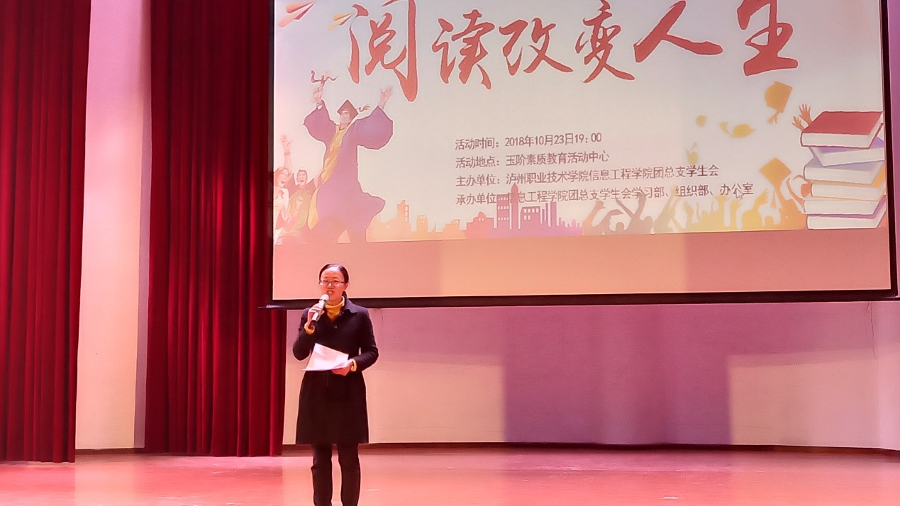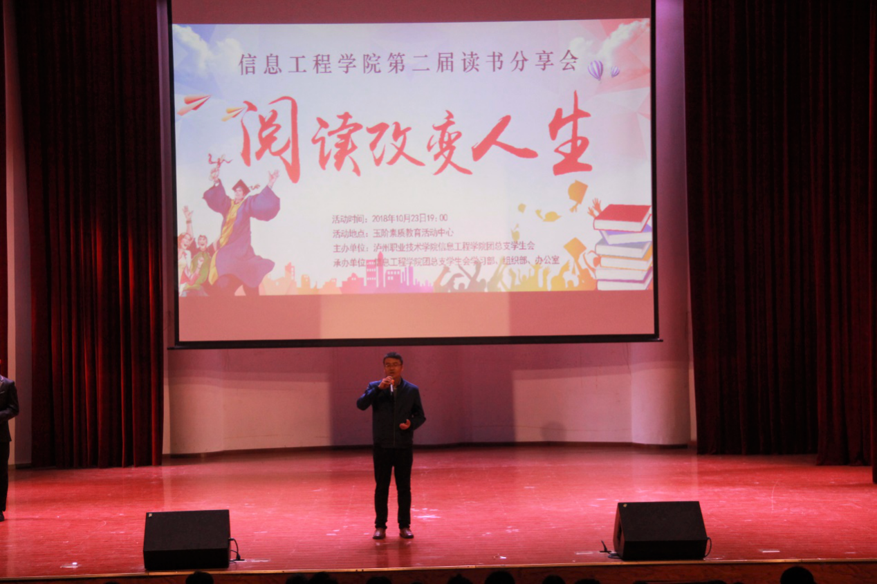 10月23日晚上7点信息工程公司在员工活动中心成功举办了第二届读书分享会。党总支副书记喻维春、团总支书记刘利、辅导员刘霞、周艳、李建华、杨萍、冷雪琴老师以及信息工程公司全体同学参与此次分享会。意在鼓励同学们“多读书、读好书、好读书”。