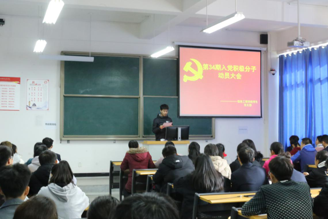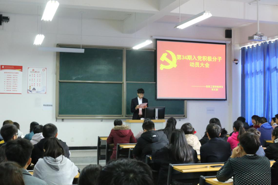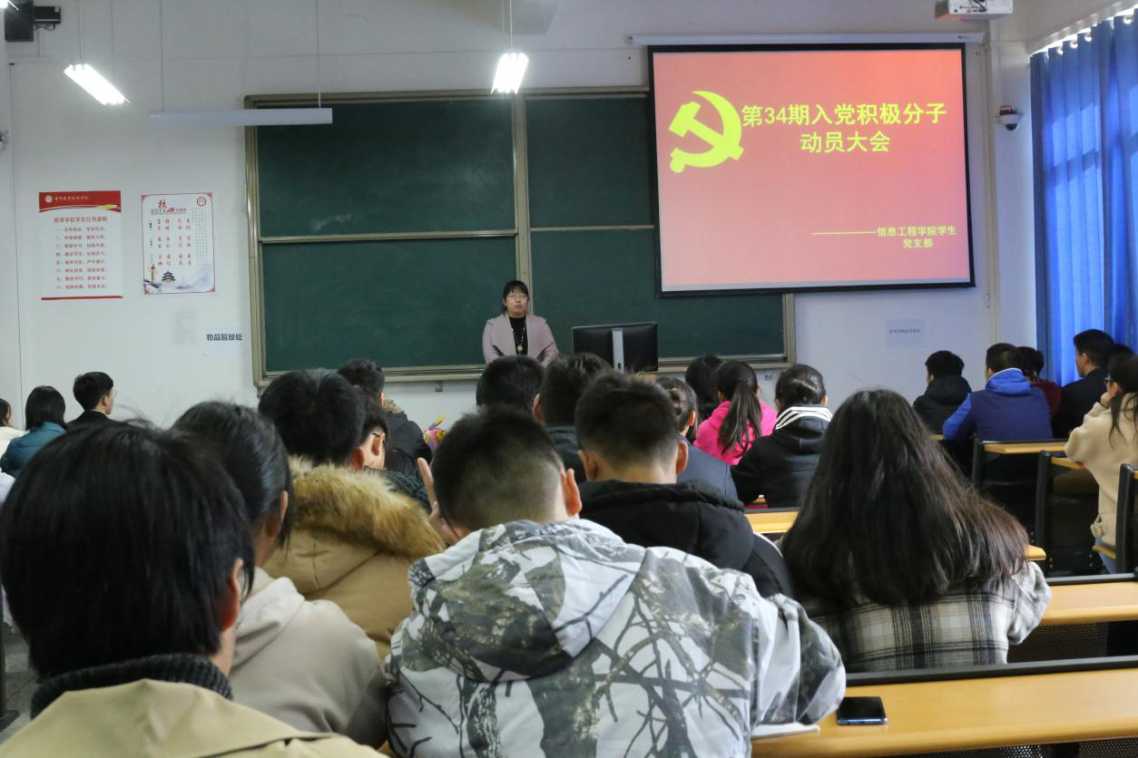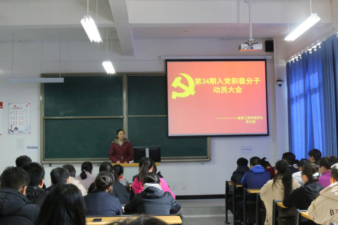 12月6日12:20,信息工程公司第三十四期入党积极分子动员大会在代英楼1101成功举行。信息工程公司党总支副书记喻维春,员工党支部书记杨萍老师,大一大二辅导员出席了本次大会,第三十四期全体入党积极分子参加了此次大会。