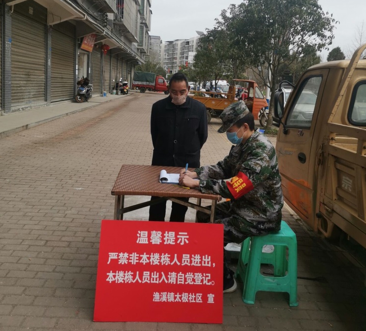 如果不是这次这个疫情,也许我也已经过了体检准备入伍了,完成我的从军梦,但这次疫情也是对我入伍之前的考验,穿上这身绿军装就得服从命令,哪里需要我就往哪里去。渔溪镇太极社区是我的社区,疫情的战役不能少了我,每天在街道设好卡点登记,禁止外来人员进入本栋楼。