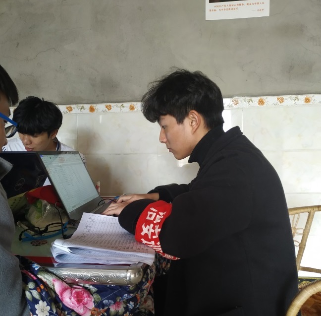 随着疫情的影响越来越大,周杰同学也没落后,积极报名,成为了村里组织的疫情防控中心的一员。他跟着村干部入户登记人员流动信息、询问居民的身体状况、宣传普及疫情预防知识、录入村民健康信息等,这也是他每天的服务工作。作为一名老员工,他力所能及的为村上防疫工作贡献自己力量,他相信:“只要我们团结一致,共同战疫,黎明的曙光就在前方。”