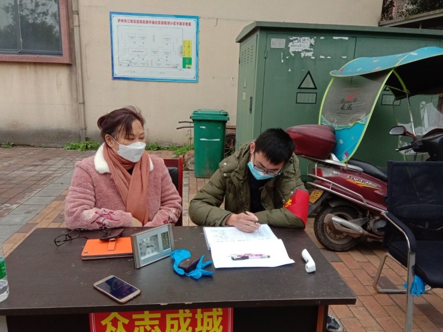 由于新型肺炎疫情的传播和感染范围不断扩大,王露秋同学积极加入,成为叙永县疫情防控指挥部的一份子。她每天都会早早地到小区登记每家每户的信息,询问居民是否外出、有无感冒状况,还为居民普及预防知识,做完这些后,她需要回到社区办公室将居民信息录入电脑。疫情期间重复着这些工作,为防疫工作贡献出自己的力量。她说:“作为一名当代青年,能为家乡尽自己的绵薄之力,我感到很开心,我相信,只要我们团结一致,疫情一定会过去。熬过冬日,静等春暖花开!”