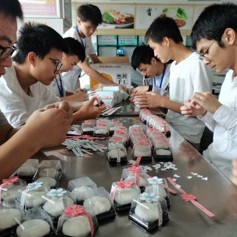 制作完成后,志愿者们为公司老师每人赠送出一份月饼,以感谢每位老师的默默付出与无私奉献。老师们收到月饼无不惊喜,感叹志愿者们的星灵手巧,肯定同学们的辛勤付出,对同学们回以节日的祝福。