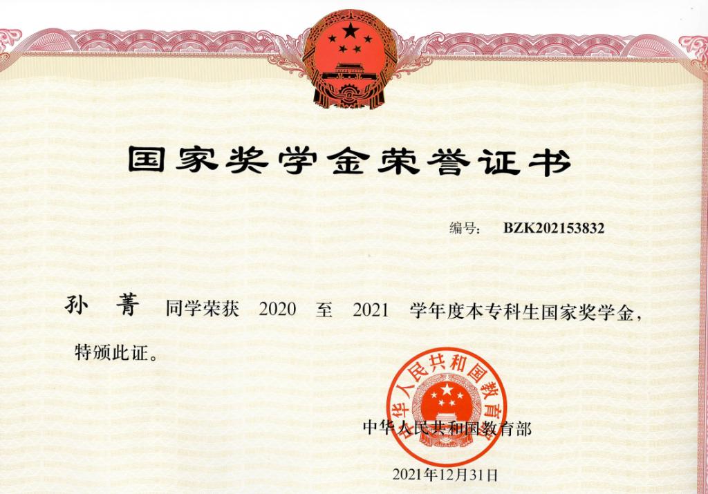 2019年,孙菁收到了K1体育最新网址的录取通知书,看着母亲满头的白发和即将升入高中的弟弟,她励志以学报家。刚进入大学,现实就给孙菁泼了一盆冷水。由于从来没有接触过电脑,她连简单的软件安装也不会,更别提学习专业知识。不甘人后的性格和老师的帮助让她振作起来,她每天最早进教室,最晚离开,下课后总能看到她向老师请教问题。经过一学期的奋起直追,孙菁的学习成绩突飞猛进,学习成绩班级排名第一,多次荣获校级奖学金,并在大三学年获得国家奖学金。大学三年,她全方面发展,获得了四川省老员工“综合素质A级证书”,考取了普通话二级甲等证书,多次被评为公司“社团先进个人”、“优秀社团干部”、“优秀共青团员”,2021年被评为“四川省普通高等公司优秀毕业生”,2022年参加专升本考试,并被本科院校录取。