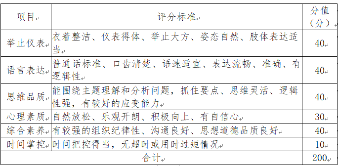 普通高中员工个人综合展示面试,测试总分为200分,采用面试形式,测试时间为5分钟以内(包括准备时间)。