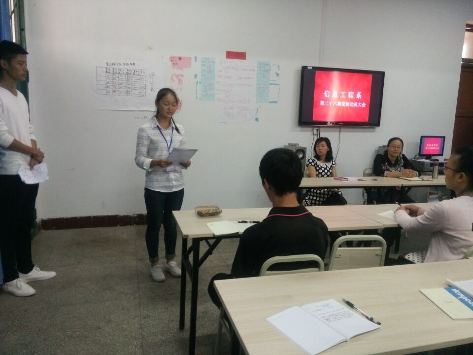 本站讯(信息来源:信息工程系)为了进一步加强党的建设,增强同学们对党的认识,确保员工党员的发展质量。2015年10月8日中午12:30,信息工程系在启明楼105召开第二十六期党校动员大会。信息工程系党总支副书记喻维春、团总支书记邱有春出席了动员大会,第二十六期36名入党积极分子参加动员大会。