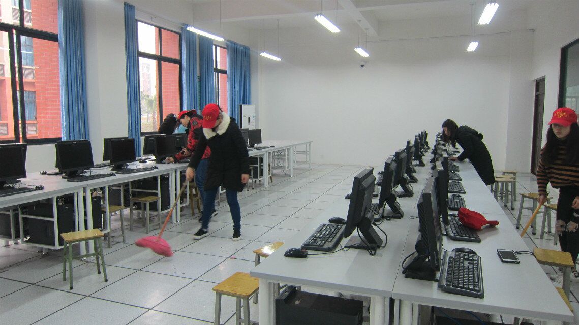 中午1点,参加义务打扫活动的同学自带着清洁工具,准时在弘礼楼门口集合。各组组长分别带队对每间机房进行大扫除,主要针对地板、窗户、桌子以及电脑设备开展清洁任务。同学们齐心协力、认真负责的对每个角落进行清洁,整个过程充满着忙碌的气息,却又不乏同学们之间的欢声笑语。经过一个小时的努力,机房焕然一新,为同学们营造了一个更加整洁舒适的学习环境。最后,由机房工作人员进行了成果验收。