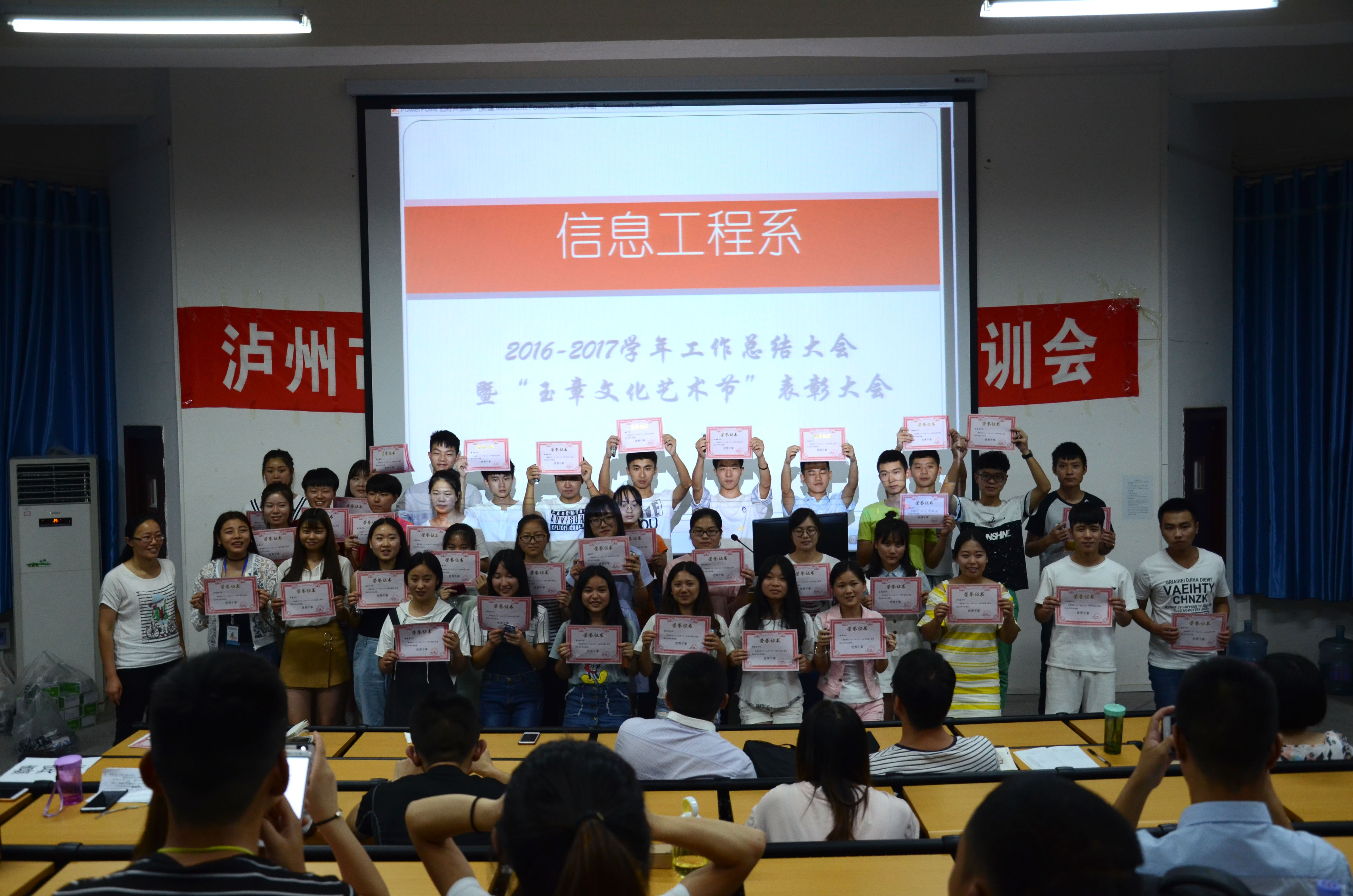 本站讯(信息来源:信息工程系)6月21日晚7点,信息工程系团支总员工会在公司萧秋厅隆重举行了2016-2017学年员工工作总结暨表彰大会。信息系党总支副书记喻维春,团总支书记邱有春以及辅导员罗明全和刘利出席了大会,参加大会的还有信息系全体员工会成员以及我系参加玉章体育文化节的运动员,大会由办公室干事卢鸿钰同学主持。