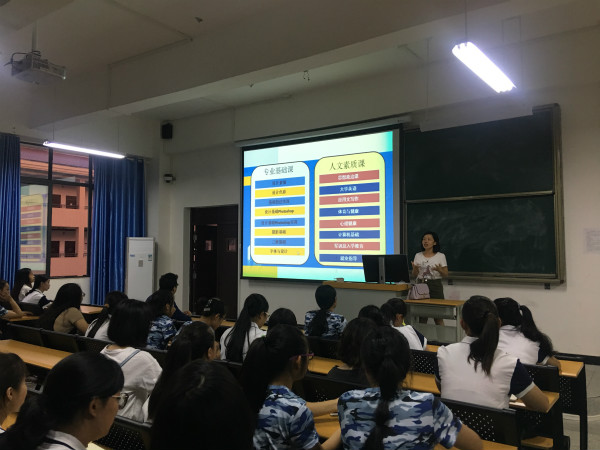 数字传媒教研室主任、动漫专业负责人易琳、数字媒体技术专业负责人邱有春、平面方向负责人林崇伟三位老师分别就动漫制作技术、数字媒体应用技术、计算机广告制作专业做了专业教育,他们针对本专业的人才培养目标和特点以及结合本专业就业形势和前景,进行了精心的准备并分别对新生进行了专业教育,对同学也提出了学习和专业素质提升方面的要求,把自己塑造成为专业理论知识扎实、职业技能过硬的高素质技能型人才。