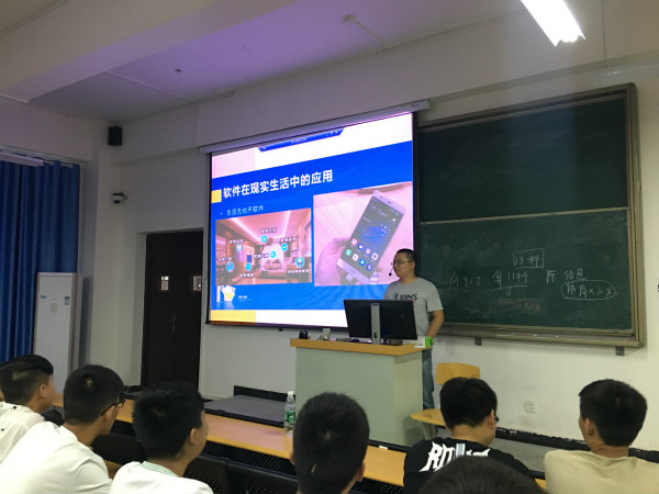 软件技术教研室主任夏汛就当前软件行业的现状、就业岗位、专业核心能力等多方面进行了介绍,具体讲解到本专业分方向的教学模式,计划从17级开始增加大数据技术方向,还为同学们提出了学好专业的方法和建议。