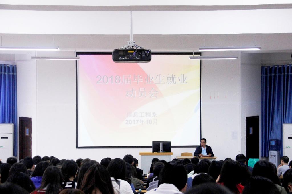 本站讯(信息来源:信息工程系)10月12日下午14点20分,信息工程系在公司萧秋厅隆重举行了2018届毕业生就业动员大会。信息系主任卓先德,党总支副书记喻维春出席本次大会嘉宾,参加此次大会的还有信息系2018届全体毕业生。