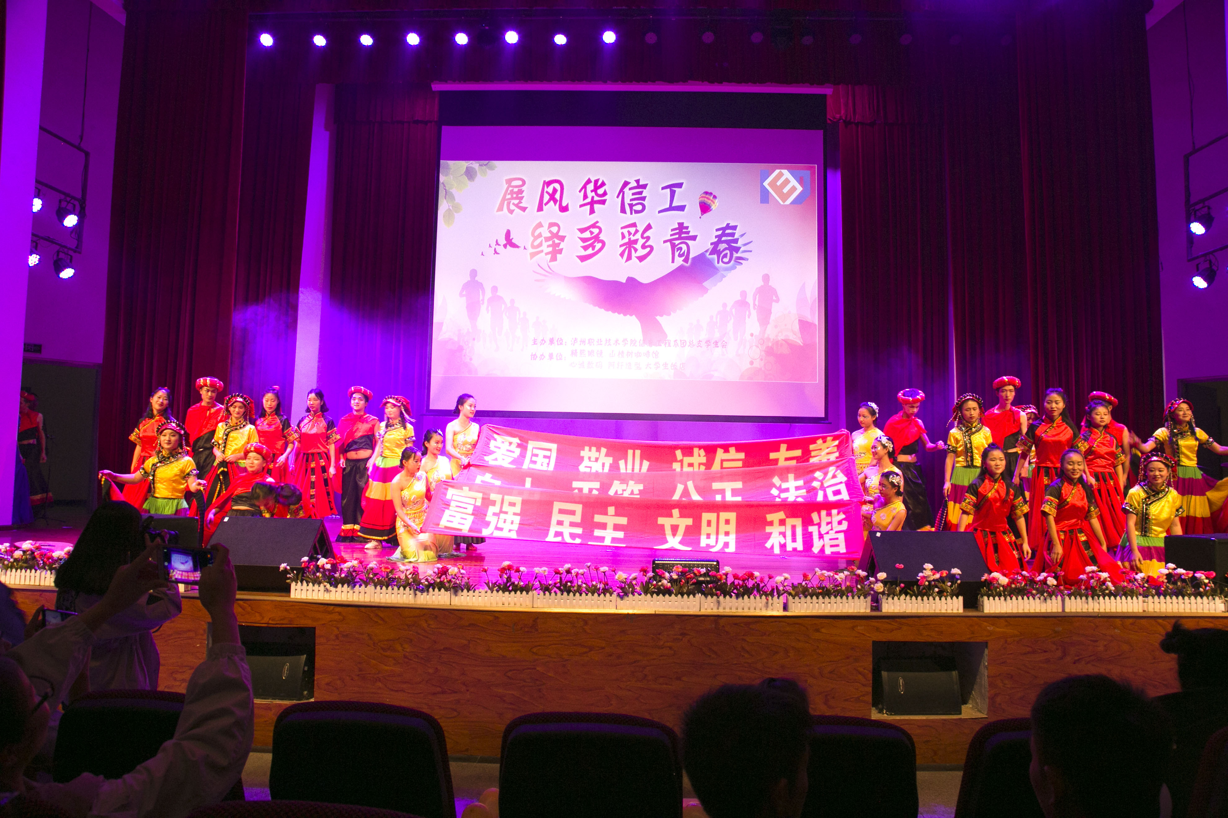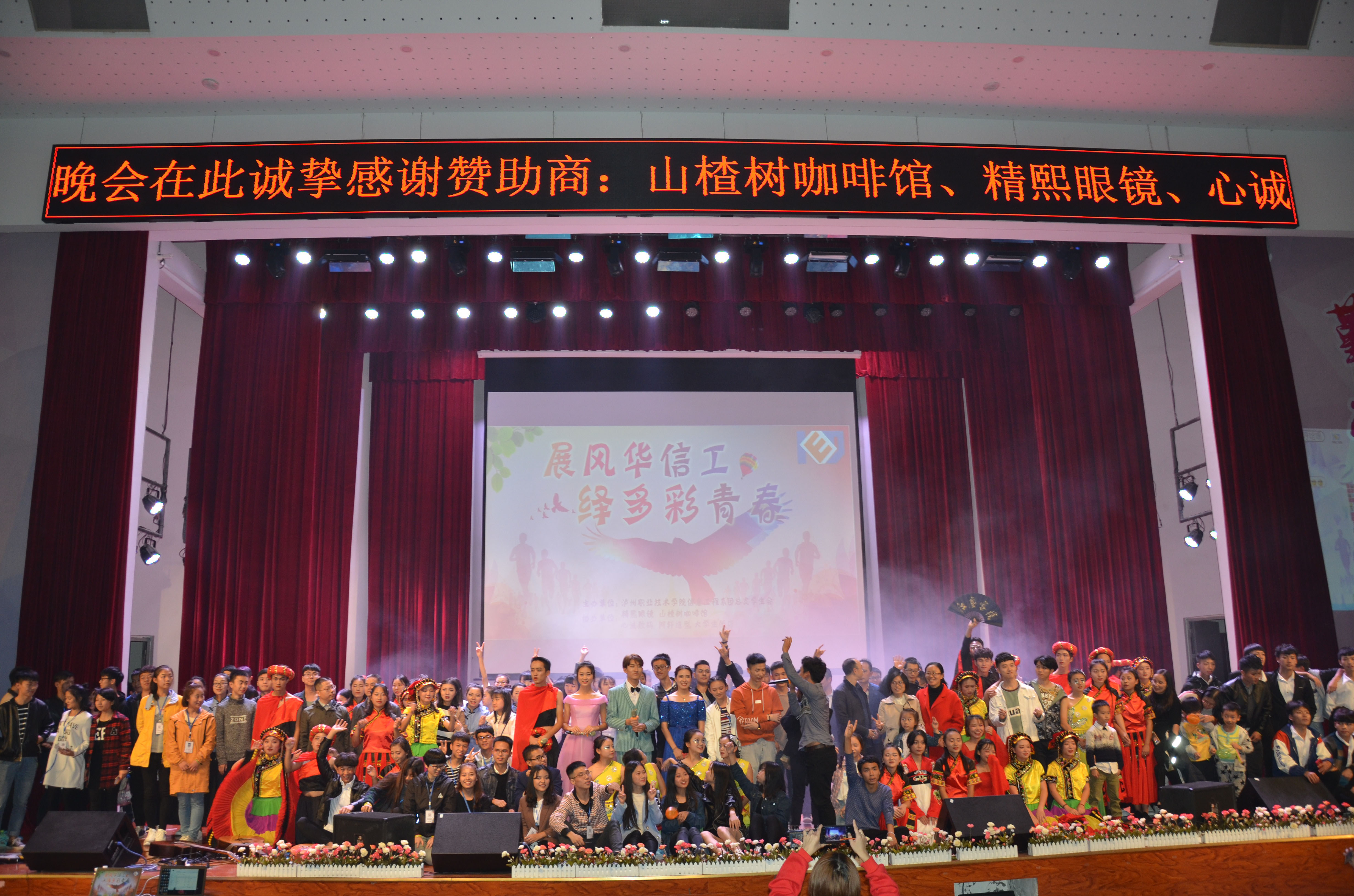 本站讯(信息来源:信息工程系)11月17日晚18点30分,由信息工程系团总支员工会主办的“展风华信工,绎多彩青春”迎新晚会在公司员工活动中心成功举办。信息工程系主任卓先德、副主任曾德明、党总支副书记喻维春、团总支书记邹烨燔、信息技术中心主任龙小宏和信息工程系全体教师,老员工饭店、精熙眼镜、山楂树网络生活馆、精诚数码等赞助商嘉宾以及2016,2017级全体同学参加了本次晚会。