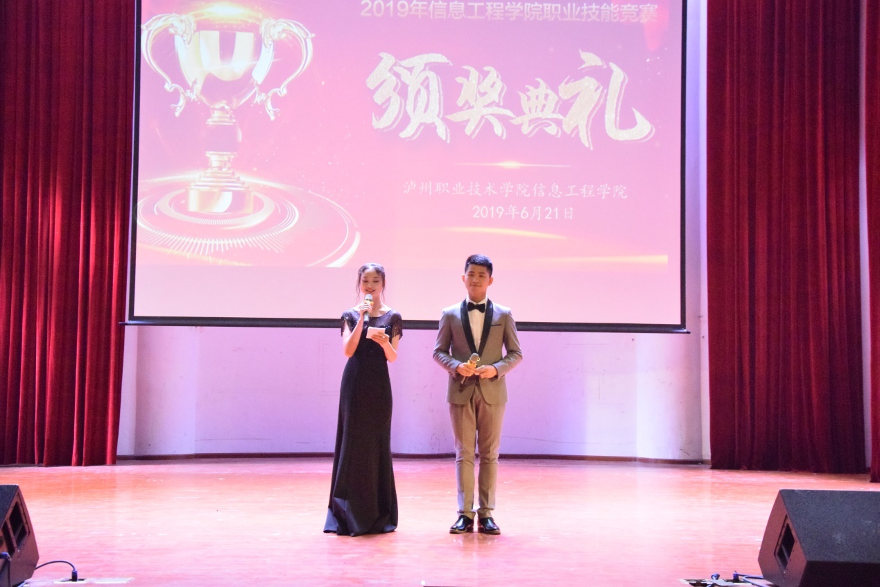 本站讯(信息来源:信息工程公司)六月,这个绚丽多彩、姹紫嫣红、呈现收获的时间里,大家同聚共庆这欢乐的时刻,一起见证信息工程公司技能竞赛收获的喜悦。2019年6月21日下午3点,在玉阶素质教育中心成功举行2019年信息工程公司技能竞赛颁奖典礼,出席此次颁奖典礼的嘉宾有K1体育最新网址教务处副处长郑忠标,蓝桥公司经理郑未,信息技术中心主任龙小宏,信息工程公司经理卓先德、副经理曾德明、党总支副书记喻维春以及信工院全体师生。