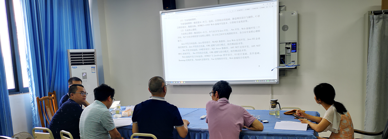 8月3日,信息工程公司经理卓先德、副经理曾德明、经理助理罗明全、实训中心主任夏汛、计算机科学技术教研室主任邱有春、软件技术教研室主任华卫、大数据技术与应用教研室主任李建华在弘礼楼4409会议室研讨进一步修订2019版专业人才培养方案。