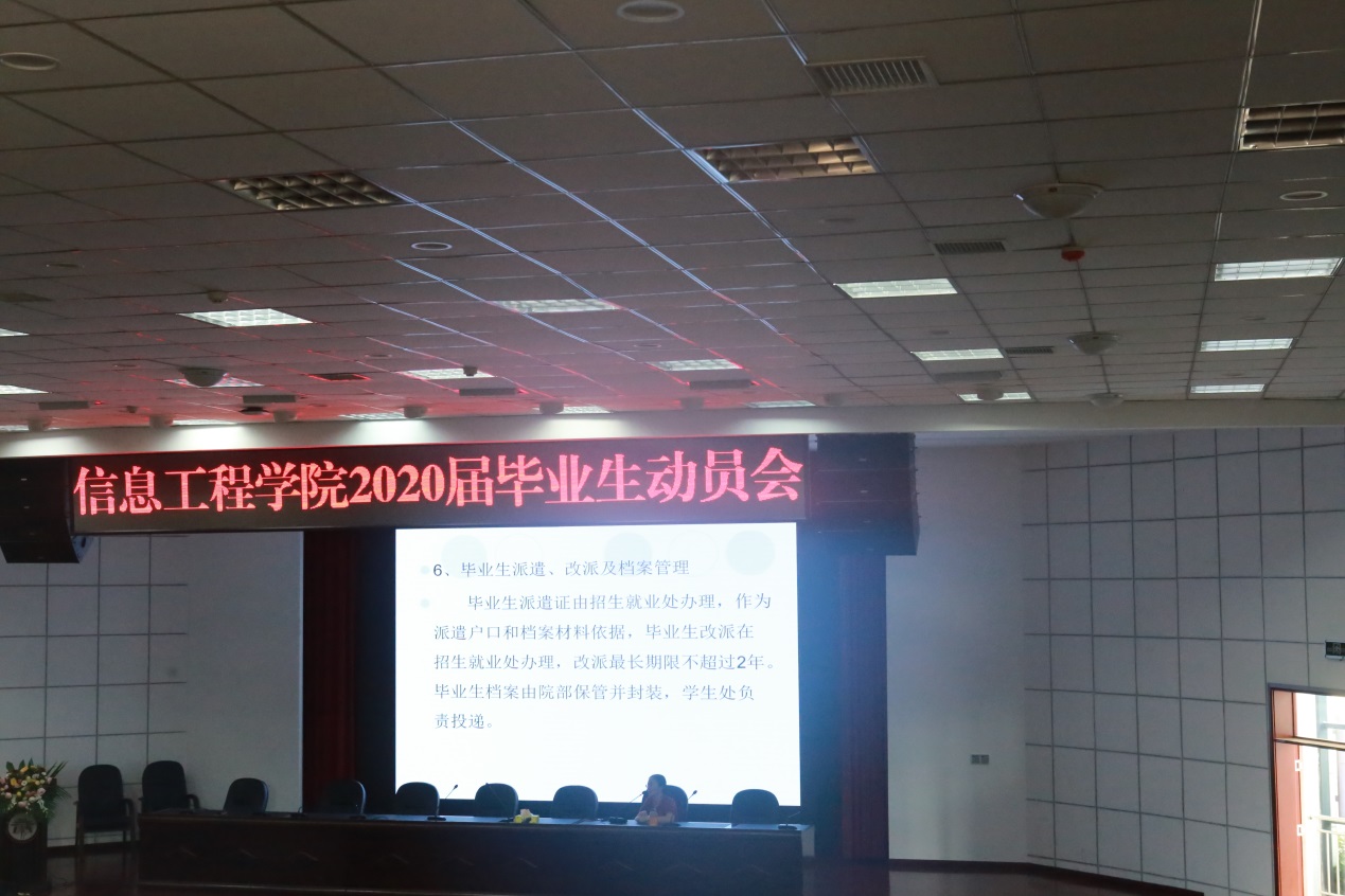 此次动员大会的召开,既是对即将毕业员工的就业动员,更是对他们的关怀体现,为同学们的就业准备工作打了一剂强心剂。找到一份适合自己的工作是个艰难的过程,只要大家坚持,敢于拼搏,一定会找到一份满意的工作,为自己即将结束的大学学习生活交上一份满意的答卷。最后愿信息工程公司2020届毕业生旗开得胜。