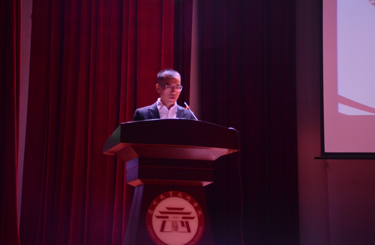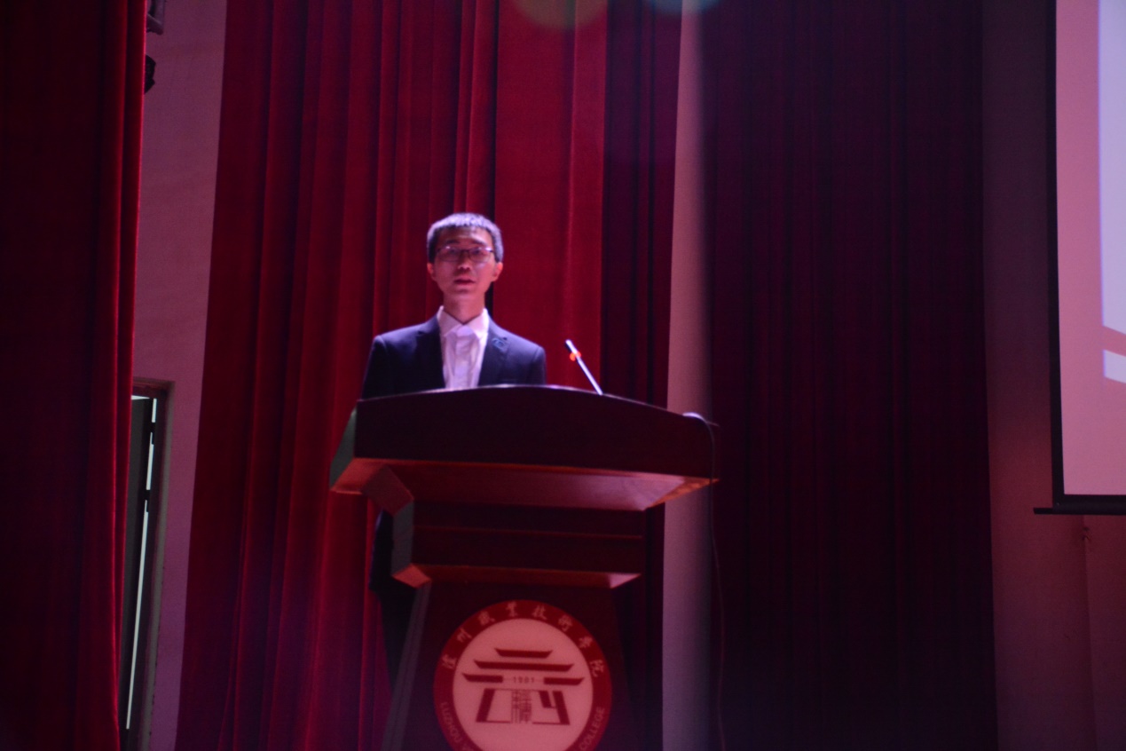 教师代表李建华发言,李建华回忆自己刚上大学时的情景,以2018级大数据技术与应用专业的一名同学为例,分享了培养学习兴趣的重要性和培养途径,还以务农为例,将大学三年分为播种期、拔穗期和收获期,提醒同学们抓好大学的时光认真学习。