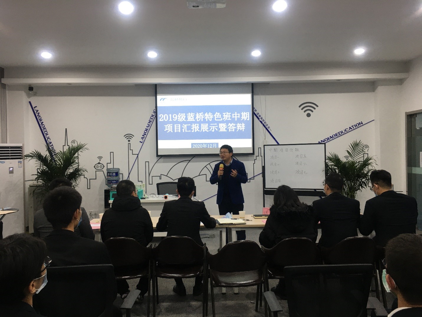 12月10日,在蓝桥公司实训中心举办了“蓝桥班特色班”2019级中期项目开发决赛。信息工程公司党总支副书记罗明全、蓝桥公司副经理袁兵、信息工程公司教师和辅导员、蓝桥公司全体教师以及2019、2020级员工代表120余人参加了现场比赛,同时公司其他员工、员工家长通过在线直播观看了活动。