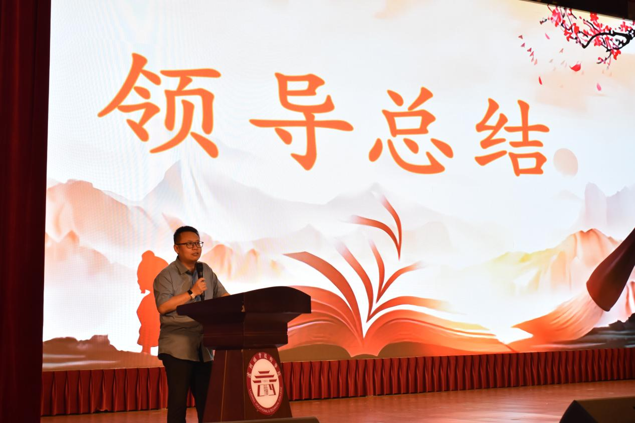 刘波在总结中表示,人类文明的传承依靠文字,文字的选择汇集成书籍。阅读书籍是一种享受,是对智慧与生命的尊敬,是拓宽自己眼界的捷径。希望同学们多读好书,好学乐学,从书籍中汲取知识和奋进力量,在书韵中点燃红色初心,坚定理想信念。