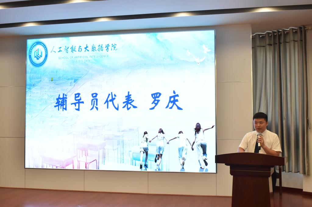 毕业班辅导员代表罗庆回顾了三年来的点点滴滴,见证了大家从稚嫩到成熟,给同学们送上了殷切期望和祝福。