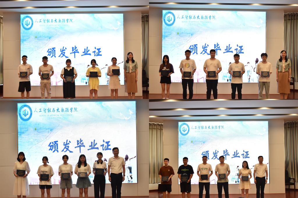 高娜、卢正才为毕业生代表颁发毕业证书。