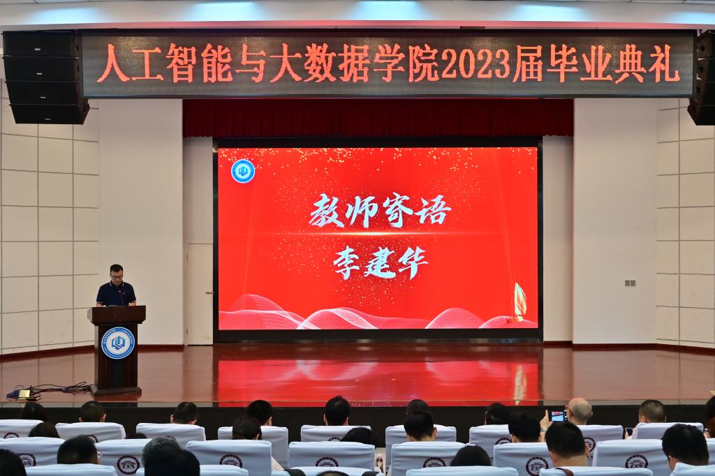 教师代表李建华博士为毕业生送上寄语。希望同学们始终不忘初心,心怀感恩,乐观直面人生起伏。祝愿同学们毕业快乐,在人生的道路上走得更远、更坚定。