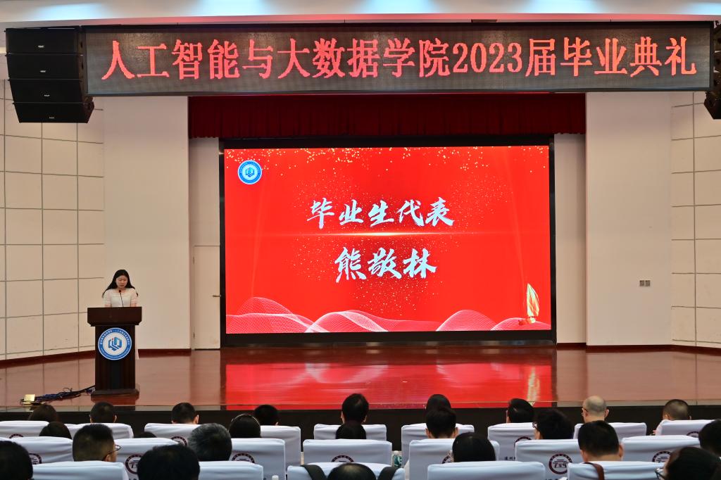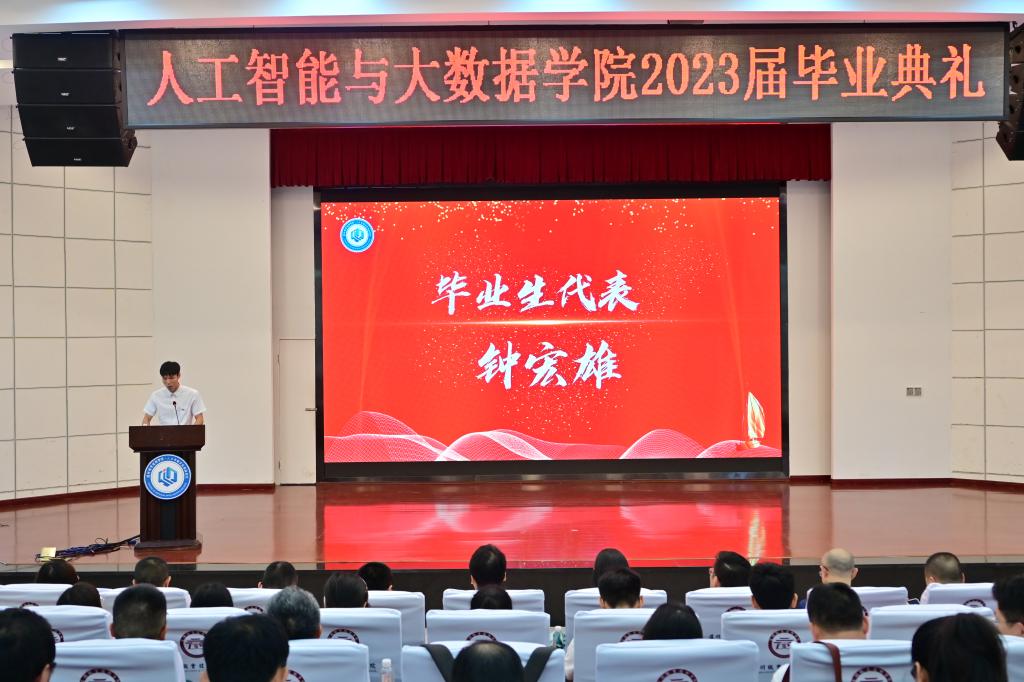 毕业生代表钟宏雄分享了自己从平凡到卓越的蜕变历程,表示将秉承“厚德立信·笃学致远”的院训,继续拼搏奋进,砥砺奋发,书写人生新篇章。