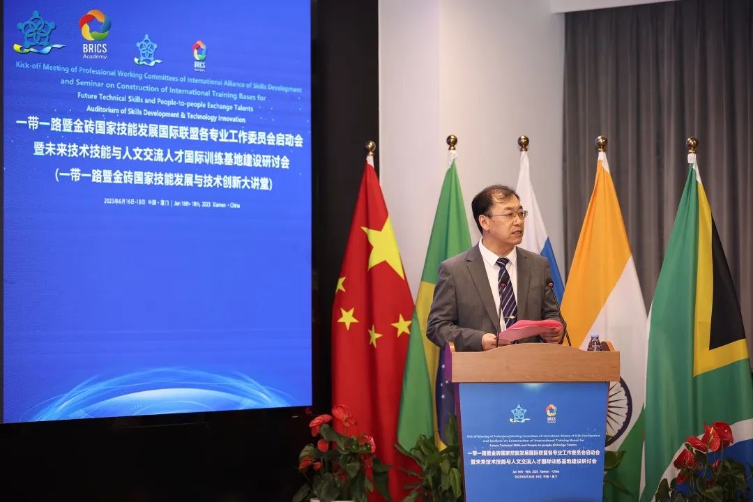 研讨会于6月17日上午在厦门市金砖未来技能发展与技术创新研究院举行,来自全国82所院校、18家企业和社会团体的200多名领导和专家现场参会,刘振英理事长致辞并发布2023年度联盟工作计划。