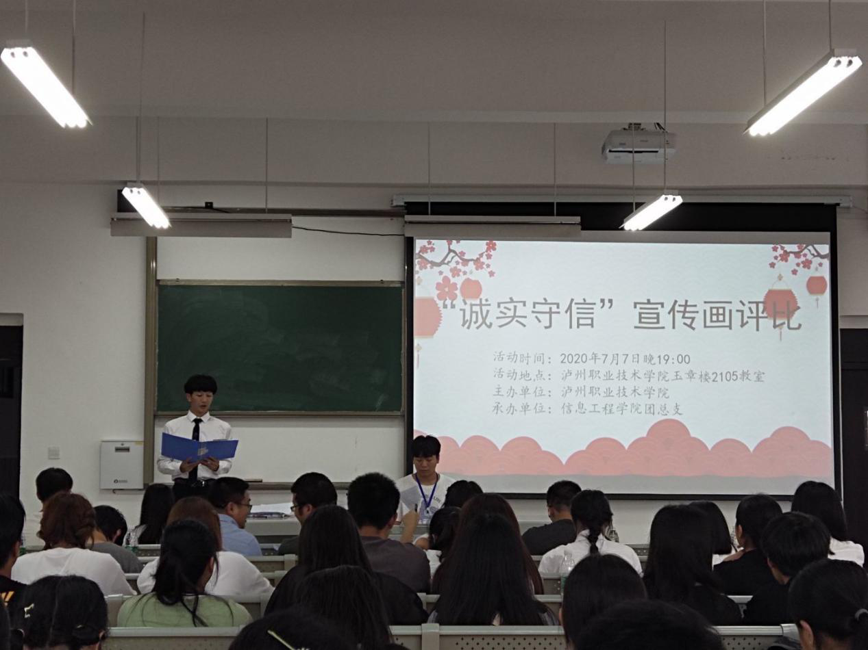 2020年7月7日晚上,信息工程公司在玉章楼2105教室举行“诚实守信”公益宣传画决赛,本次比赛共收到全校150多份作品,最终有18份作品入围决赛。参加本次活动有信息工程公司党总支副书记罗明全、团总支书记刘利、入围决赛作品选手代表以及各二级公司观众代表。活动开始时,主持人王新宣读了本次大赛的比赛规则和评分标准。随后十八位选手有序地上台对作品设计进行解说。比赛中,决赛作品从不同的角度和视角,诠释着作者对主题意义...